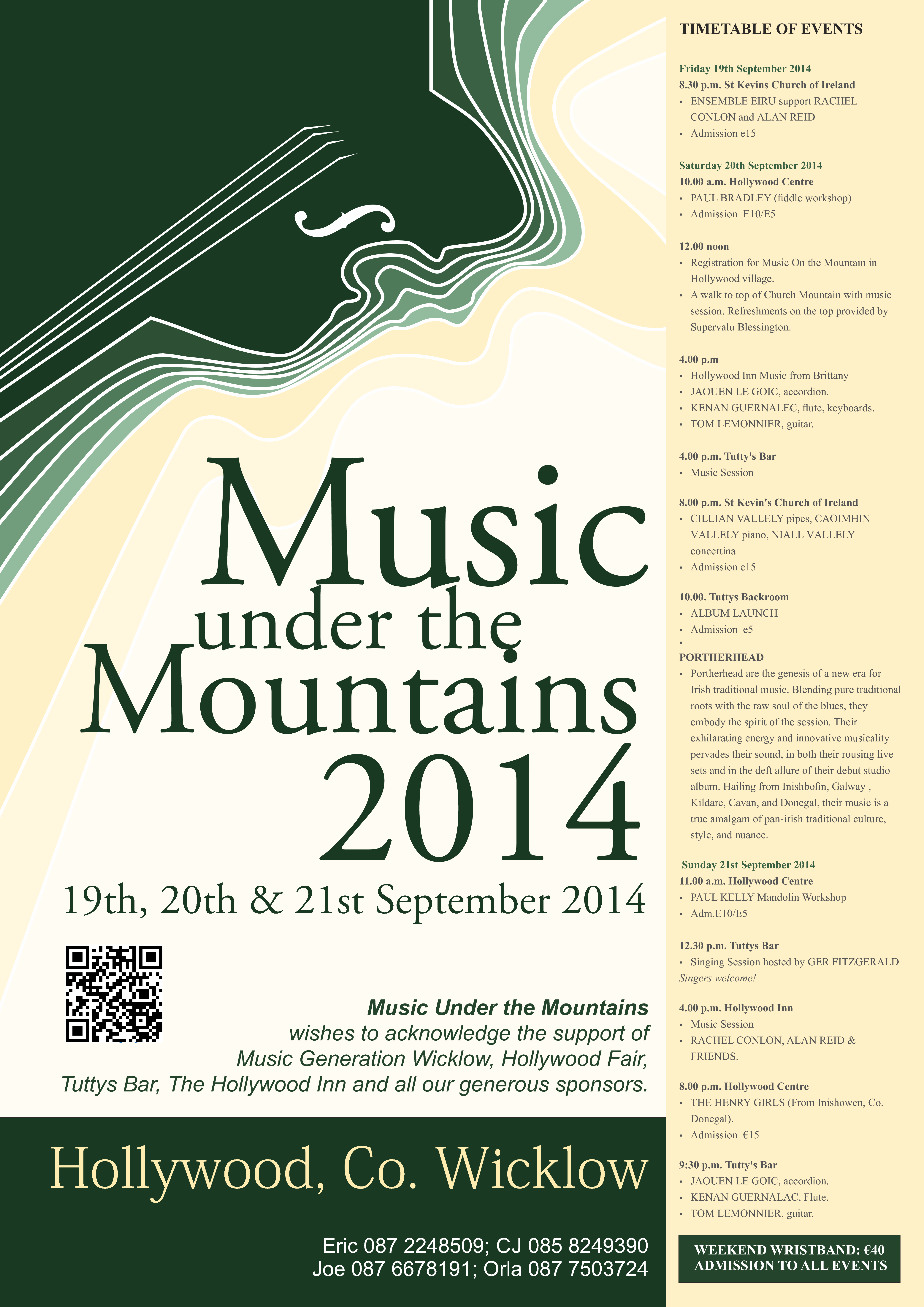 Music Under The Mountains would like to acknowledge the support of Wicklow Arts Office, Wicklow County Council, Arts Council, Creative Ireland and the Local Live Performance Programming Scheme provided by the Department of Tourism, Culture, Arts, Gaeltacht, Sport and Media and Creative Ireland Baltinglass Municipal Council and all our generous sponsors, without whom the festival would not be possible.